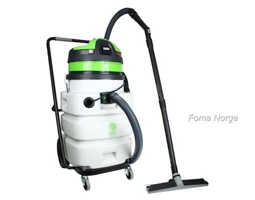 Maskinen har også en tippbar beholder. Flottørsystemet sikrer at store mengder væske ikke når motoren. Tilpasset for oppsuging av slam og væsker.